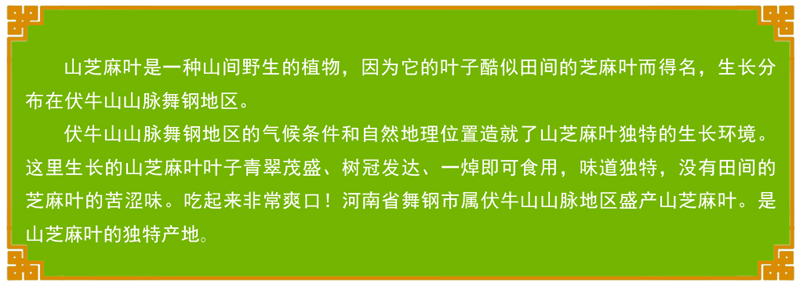 河南省伏牛山山脉地区生产山芝麻叶。是山芝麻叶的独特产地。