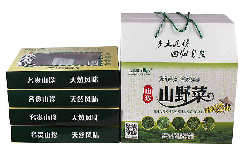 品类:山芝麻叶、山槐花、龙柏芽、拳菜、梅菜、荠荠菜、山芹菜、地皮菜、山豆角等。
