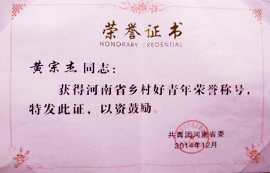 2014年12月 业易网总经理黄宗杰被共青团河南省委评为“河南省乡村好青年”荣誉称号。